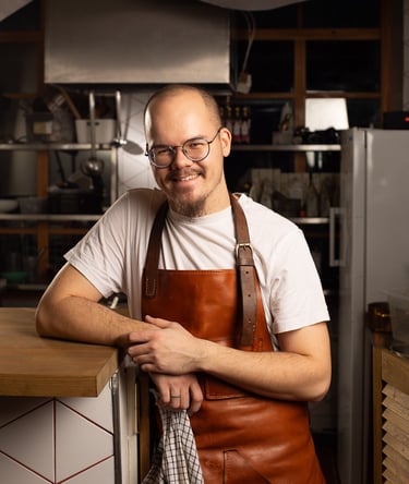 Pijus Gurevičius dešimt metų dirbo svetimose virtuvėse. Ir štai 2025 metų liepos mėnesį jis pagaliau nusprendė ką nori gaminti savoje virtuvėje. Tai ilgo ruošimo maistas, lengvai pagaminamas namuose, bet reikalaujantis laiko ir atidumo. Gydantys sultiniai, prisotinti kolageno, šventiniai subproduktų patiekalai ir paprasti jaukumą kuriantys paštetai, jaučių liežuviai, karamelizuoti svogūnai - tai tik dalis Pijaus meniu. Plačiai akis į pasaulį atvėręs šefas, kasdien domisi maisto gaminimo subtilybėmis, todėl pagal užsakymą gali paruošti beveik bet ką!